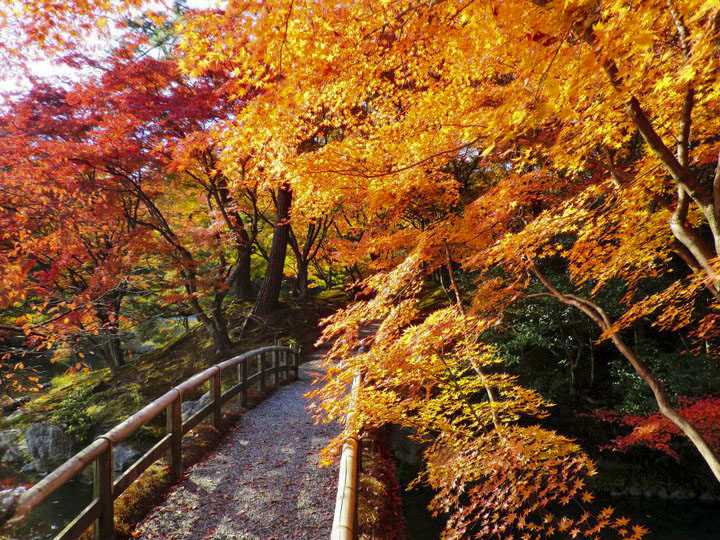 Vous l’attendiez tous, le voilà enfin, le grand gagnant du concours de la meilleure saison au Japon : l’automne ! Vous l’aurez compris, c’est ma saison préférée pour découvrir le Japon. Les températures sont douces, les touristes nettement moins nombreux, et contempler des paysages sublimés par les feuilles rouges des érables est plus facile que pour les cerisiers du printemps, car le processus est plus progressif. De plus, il s’étend sur plusieurs mois selon les points de l’archipel où vous souhaitez les admirer, vous pouvez donc par exemple découvrir les érables de Nikko (au nord de Tokyo) en pleine explosion de couleur puis assister à un spectacle équivalent à Kyoto 3 semaines plus tard. L’automne commence théoriquement en septembre, mais mieux vaut attendre fin octobre, pour éviter le plus possible les typhons. La météo se calme alors et les températures restent douces (entre 7 et 17 degrés de moyenne en novembre).