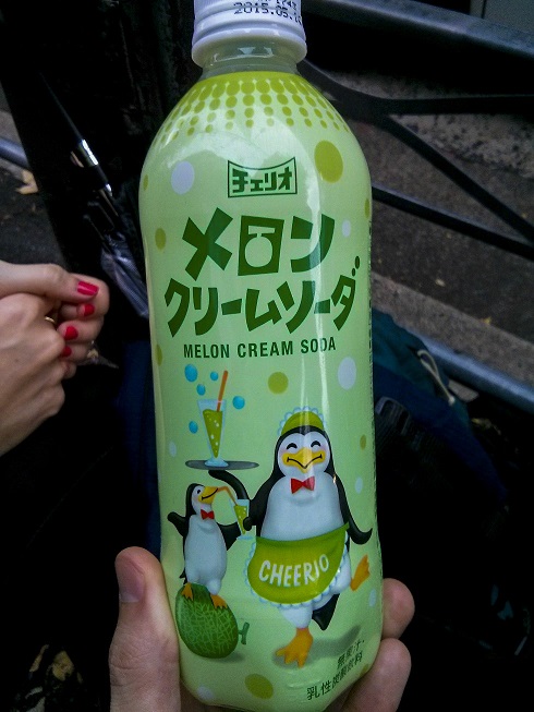 Oui, c’est le seigneur des sodas. Il y a quatre ans, j’étais tombé à Kyoto sur un « melon cream soda », dans un distributeur de l’allée menant au temple Byodo-in, à Uji, dans le sud-est de Kyoto. Il était absolument délicieux. Légèrement pétillant, goût frais et juste sucré comme il faut (parce que trop c’est écœurant, souvent le cas des parfums cerise), pas trop chimique (comme nombre de variations très pharmaceutiques), bref slurp, miam, gloups. Le reste de mon séjour à Kyoto avait été tourmenté par la recherche de ce soda, resté introuvable dans tous les autres distributeurs. Et… j’ai osé oublier son nom. Quatre longues années durant, le souvenir de ce nectar divin devait me hanter.