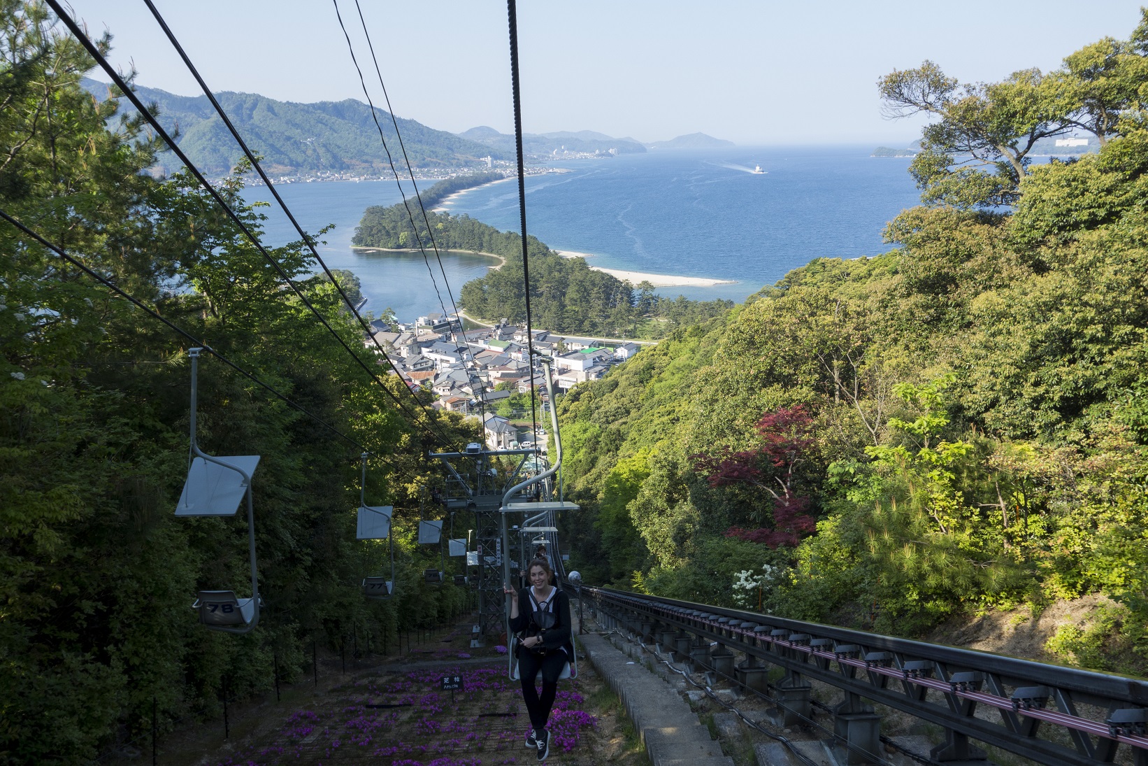 Amanohashidate, au bord de la mer du Japon, c’est une fine bande de sable couverte d’une pinède, traversant une baie. Son nom, bien compliqué, signifie « pont du ciel ». Il s’agit de l’une des célèbres « trois vues du Japon » (les deux autres sont la baie de Matsushima, dans le nord, et l’île de Miyajima, dont j’ai déjà parlé, près de Hiroshima), mais probablement la moins connue, et la seule que je n’avais pas encore admirée de mes yeux. Cette visite a été une véritable révélation, grâce à une météo parfaite et à notre groupe de joyeux drilles. On a fait un tour en bateau, un tour à vélo, et même quelques attractions dans un mini-parc situé près du plus beau point de vue de la baie (malgré un autre épisode malheureux vertigineux sur l’attraction des doubles vélo traversant le vide).