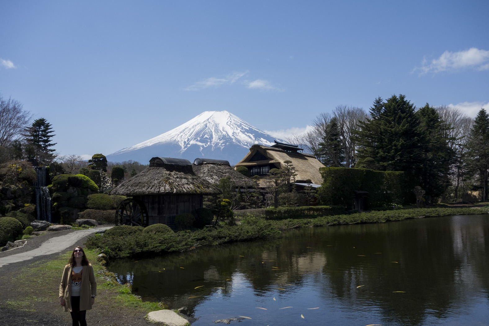 Puis on s’entasse à six dans une grosse voiture de location et c’est parti pour un hôtel au bord du lac Kawaguchi, au pied du mont Fuji. Si les nuages nous l’ont caché le jour de notre arrivée, le lendemain, il nous a fait le plaisir de se montrer dans toute sa gloire, juste à temps pour la visite d’un village traditionnel préservé. Je dois dire que je m’en attribue le mérite car le temps n’était pas si clair que ça, trouver le bon créneau a nécessité le déploiement de toutes les ressources imaginables, en scrutant la direction du vent et des dizaines de webcam filmant la montagne sous tous les angles ! 😀