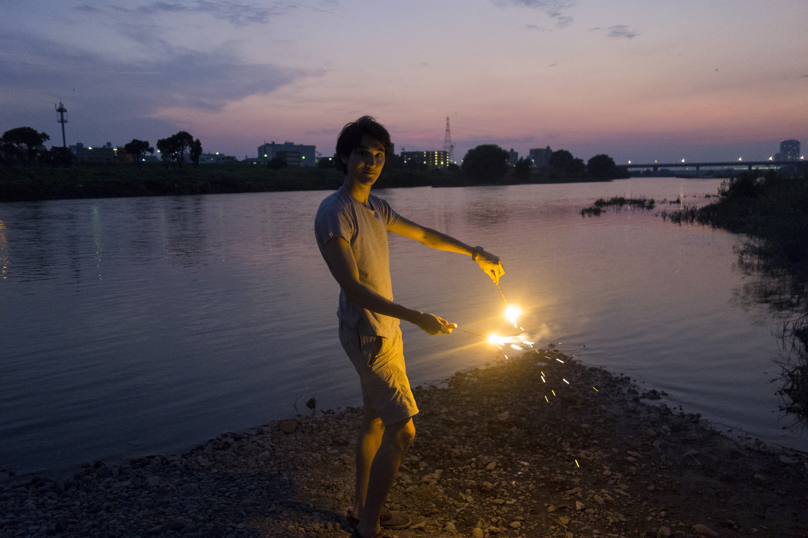 Dans les derniers jours de notre séjour, nous sommes aussi allés allumer quelques feux au soleil couchant le long de la rivière près de notre maison. Nostalgie…